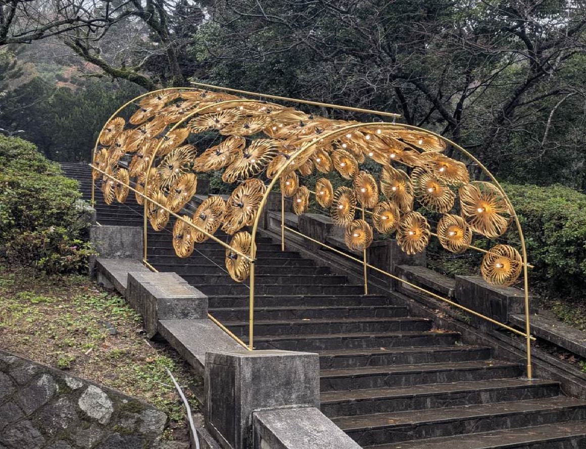 以金色竹編構築可穿越的拱形路徑,白日引光入景、夜晚柔光指引,象徵一步步向上前行的祝願與希望。