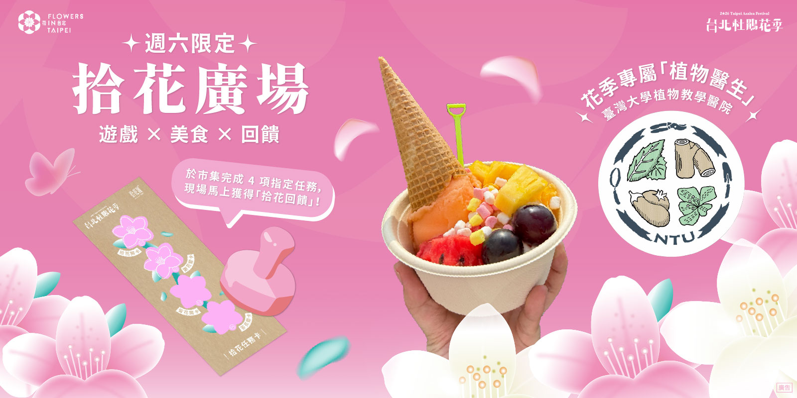 來場春日療癒之旅吧!透過市集遊戲關卡(拾花、謝花、留花任務),再搭配春日小點 ——⛟ 吾爸吾媽水果特調⛟ 享饗餐車⛟ 紅玉滿赤心雞蛋糕讓花香與美味一起療癒你的身心。