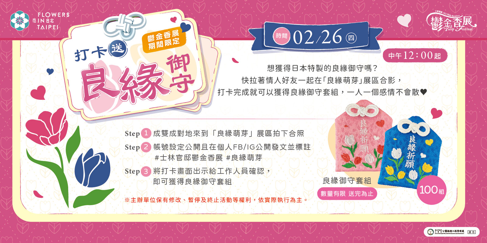 並標註#士林官邸鬱金香展 #良緣萌芽