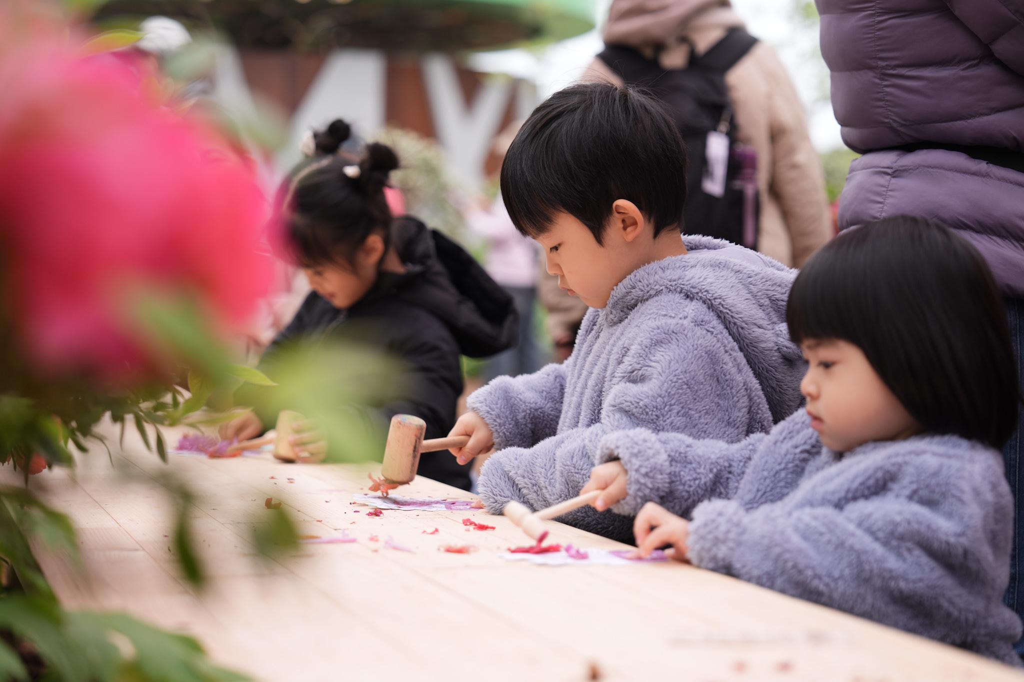 青年公園管理所主任吳旻靜補充,除了欣賞各式花卉美景,現場也規劃多項適合親子與情侶同樂的免費體驗活動。今年特別升級推出「杜鵑敲敲畫3.0」,邀請民眾撿拾自然掉落的杜鵑花瓣,透過簡單有趣的敲印創作,將花瓣的色彩與紋理轉化為獨一無二的藝術明信片,親手把春天的溫度收藏起來帶回家。