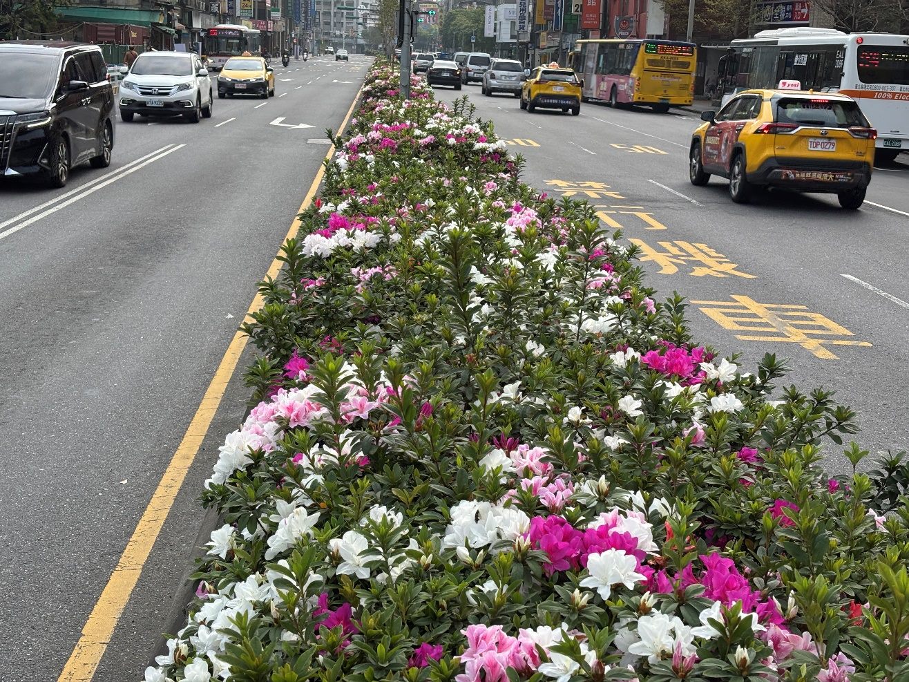 公園處表示,為營造春季花卉景觀、打造市容亮點與增進都市的色彩層次,臺北市於忠孝東路、仁愛路等街道沿線栽植杜鵑花,目前北門廣場、中華路、忠孝東路及仁愛路上,粉、白、紫、紅交織的杜鵑花叢,在春光的照耀下愈發顯得明媚動人,成片的杜鵑花在春風中搖曳生姿,為北市街頭注入滿滿活力。