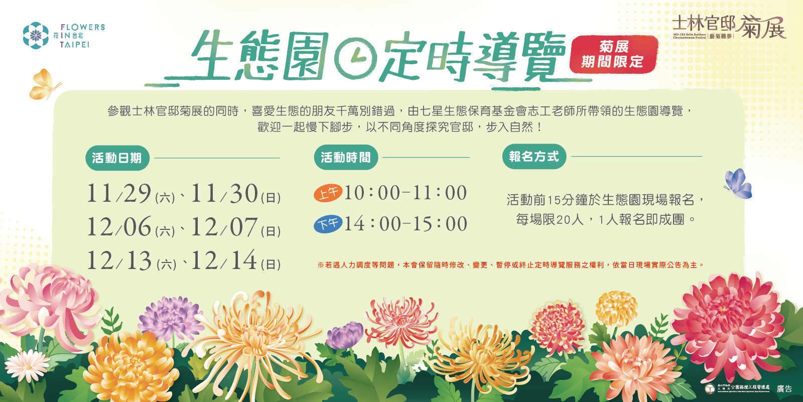 報名方式:活動前15分鐘於生態園入口現場報名,每場最多20人,1人報名即成行