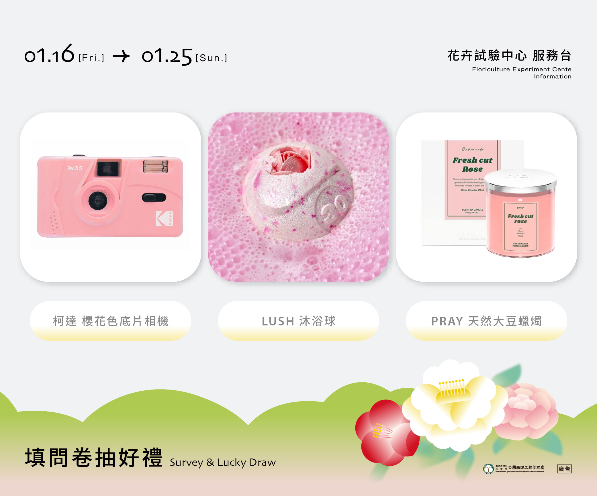 參觀台北茶花展的同時別忘了填寫問卷抽好禮~