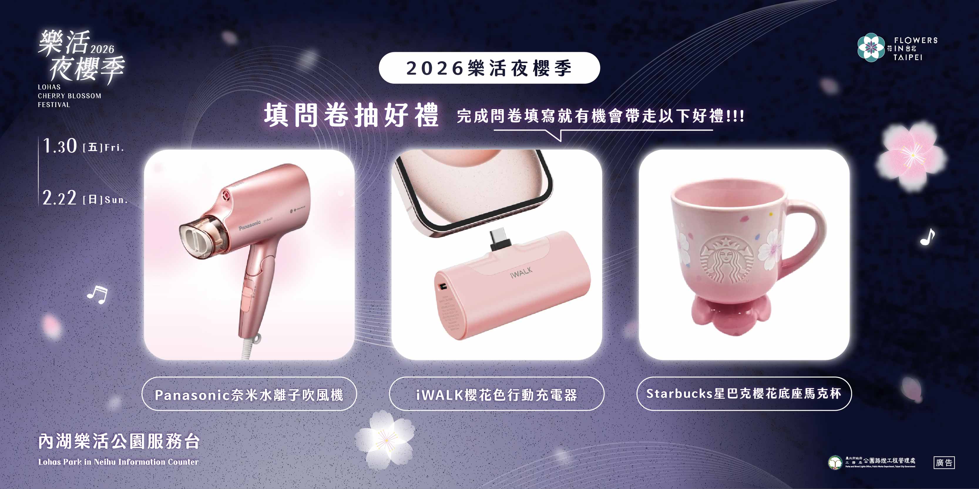 參觀樂活夜櫻季的同時別忘了填寫問卷抽好禮~