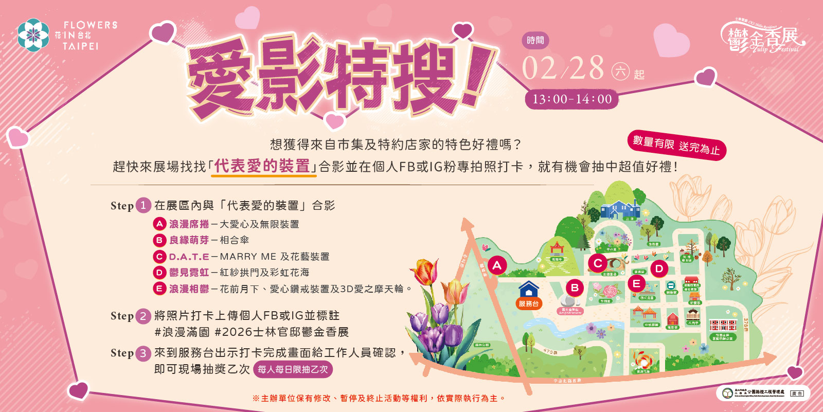 Step1.在展區內與「代表愛的裝置」合影 <必須為今年花展裝置>