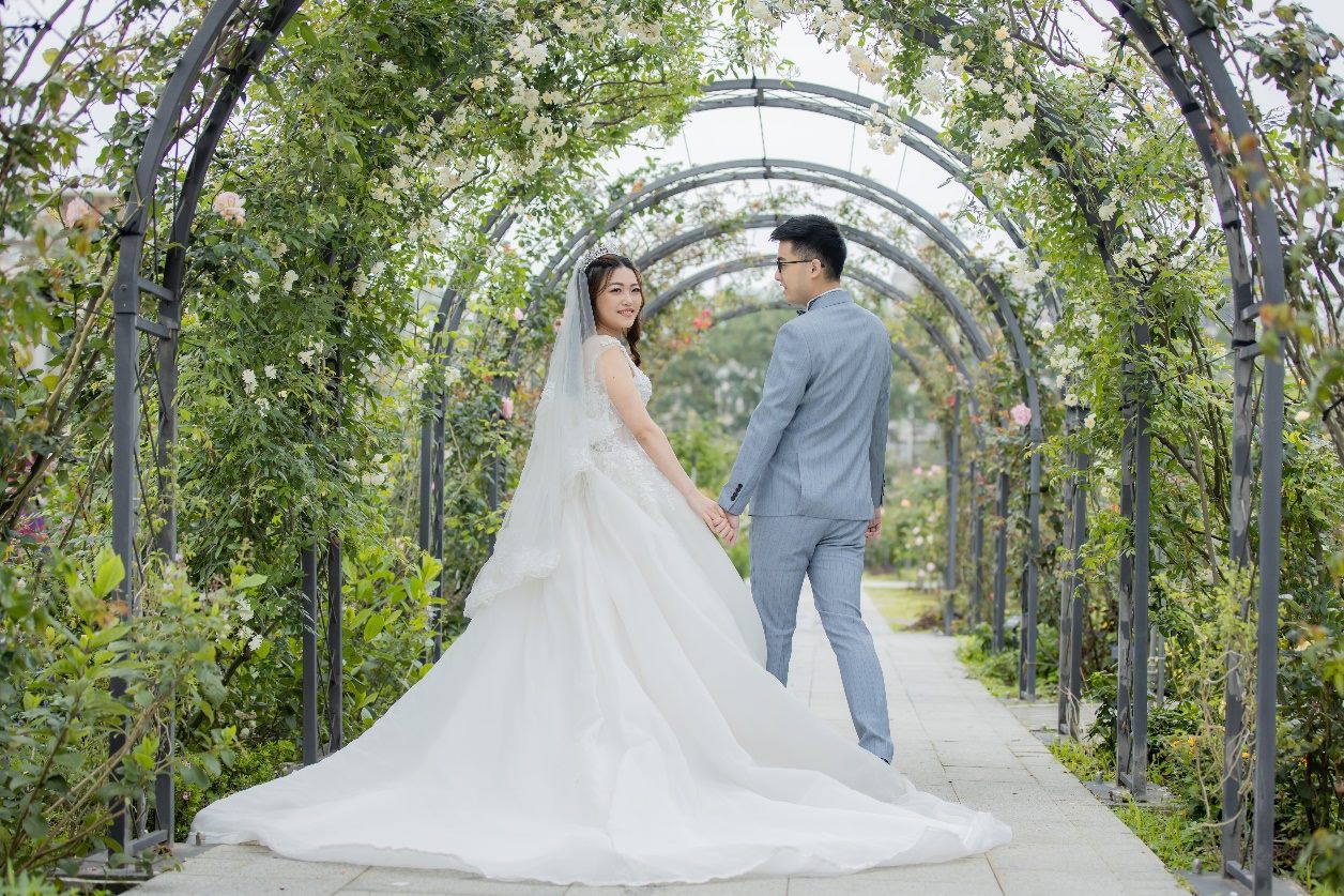 玫瑰展期間,來到園區拍攝,當天憑婚紗照即有機會兌換限量玫瑰對杯!