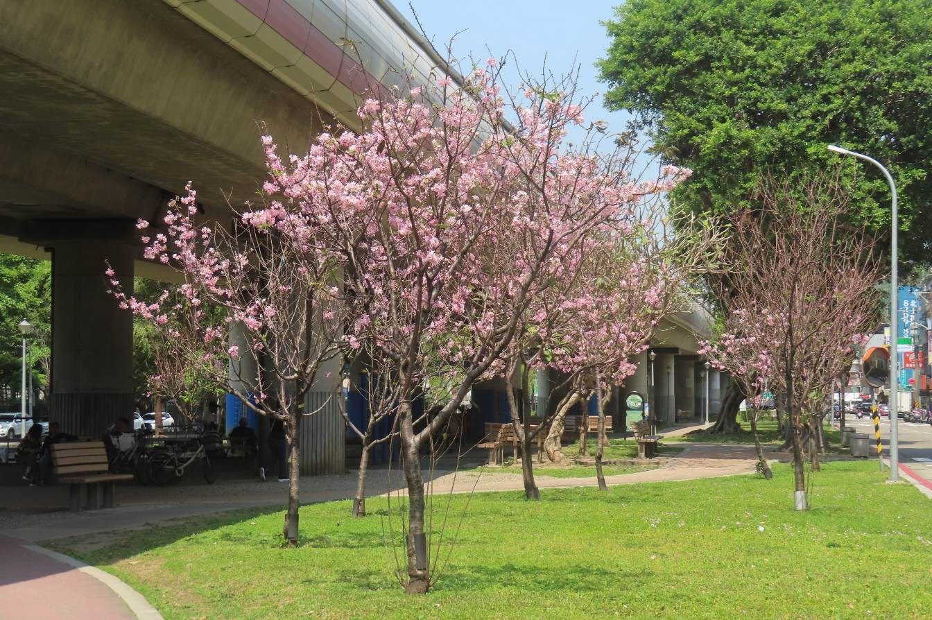 公園處表示,櫻花迷們有福了!與山區櫻花相比,平地的櫻花開花時間晚約1個月,讓市民有更多時間感受春天的氣息。以常見的「富士櫻」(又名昭和櫻、臺灣粉紅櫻)為例,陽明公園噴水池的櫻花早在2月底已滿開,而市區的二二八公園則在3月下旬迎來花期高峰。