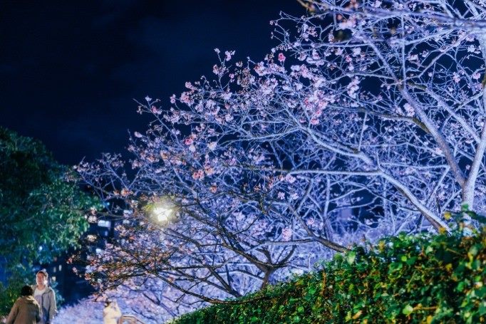 今年樂活公園地下停車場完工,樂活二期公園也正式開放,沿著賞花步道路線前行,民眾可欣賞寒櫻、八重櫻與吉野櫻於夜間交錯綻放的景致,花期自1月底至2月底隨著時序陸續綻放,是寒假期間賞櫻漫遊的好去處!
