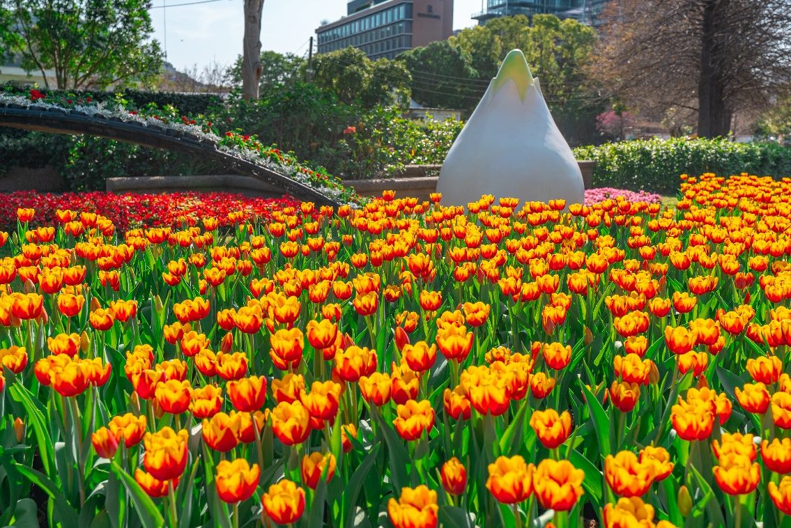 園藝管理所王淑雅主任表示,公園處特別選用來自荷蘭以及日本的鬱金香,透過種植技術的改良與冷藏處理的輔助,使屬於溫帶植物的鬱金香在亞熱帶的臺灣綻放絢麗色彩,而園藝景觀上採用層次堆疊的手法展現草花設計感。今年選用26種以上鬱金香打造5大主題展區,扣合浪漫元素,設計繽紛條帶花海,每一幕都將成為情人們對愛情的展現,融合平面及立面花藝設計,讓花色各異的鬱金香交織出最繽紛的景致,打造屬於臺北市專屬的城市美學。今年的鬱金香展適合大家相約親友遊賞,在如夢似幻的花海間,以花語傳遞心意,傳遞給彼此愛的溫度,誠摯邀請您一同踏入感官與情感共生的「浪漫滿園」!