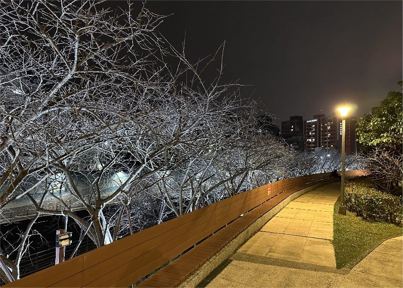 樂活二期公園於今年正式開放,與往年相比賞櫻的空間更有餘裕。大家帶著悠閒的心,漫步在賞花步道上,可以欣賞夜間寒櫻、八重櫻與吉野櫻交錯綻放的景致,從1月底至2月底隨著時間推移,不同品種的櫻花將陸續綻放,為市民帶來難忘的視覺盛宴。