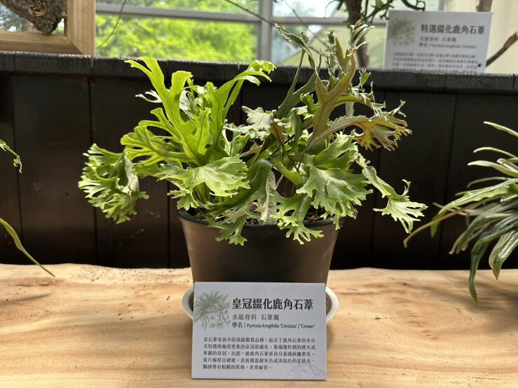公園處青年公園管理所補充,展覽精選多種特色物種,呈現植物世界的奇幻樣貌,其中最吸睛的「藍蟻蕨」(Lecanopteris deparioides),擁有藍綠至銀灰色塊莖與宛如異星生物的外型,並具有與螞蟻共生的特性,在植物玩家間享有極高人氣;其羽狀深裂葉片與肉質塊莖形成強烈視覺對比,極具觀賞價值;被譽為「遠古活化石」的「松葉蕨」(Psilotum nudum)幾乎由分枝莖構成,沒有真正的根與葉,地下為與真菌共生的根莖系統,地上則為進行光合作用的綠色枝條,展現出極簡卻奇特的生命型態;而極具園藝價值的「覆葉石松」(Huperzia carinata),則以多次二叉分枝與羽翼般優雅姿態吸引目光,枝條層層展開,如藝術雕塑般華麗精緻。